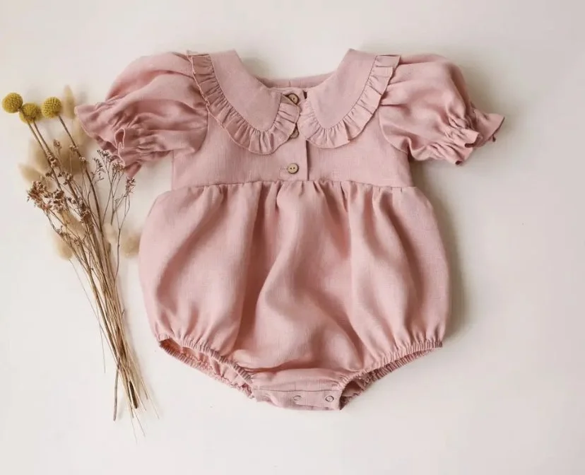 This beautiful romper adds a touch of vintage vibes with the ruffle detail and fit. Also available in matching dress.